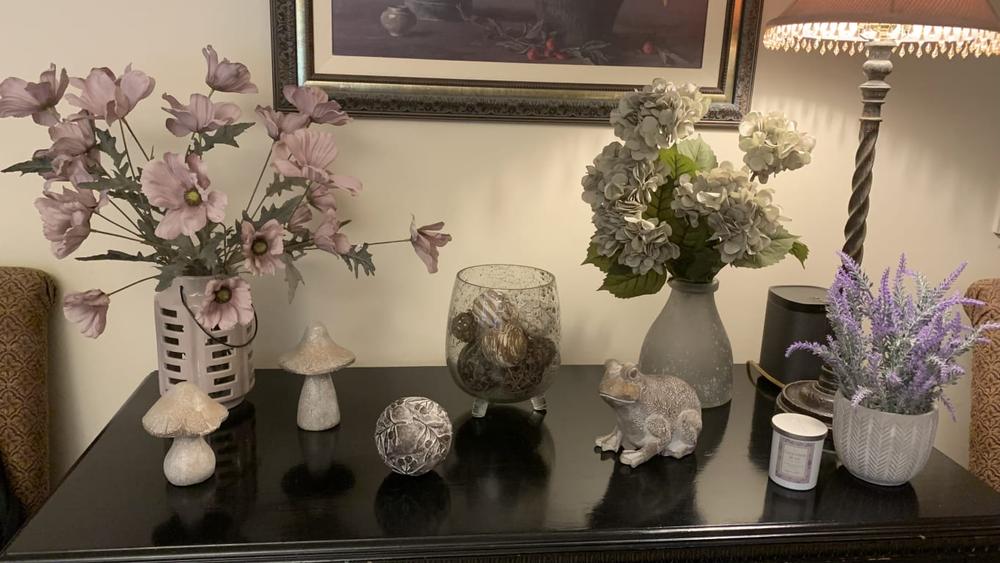 The Grey Hydrangea Floral Bush features snow-white blooms that add a refreshing touch to any setting. Crafted from fabric, its petals are almost indistinguishable from the real thing.