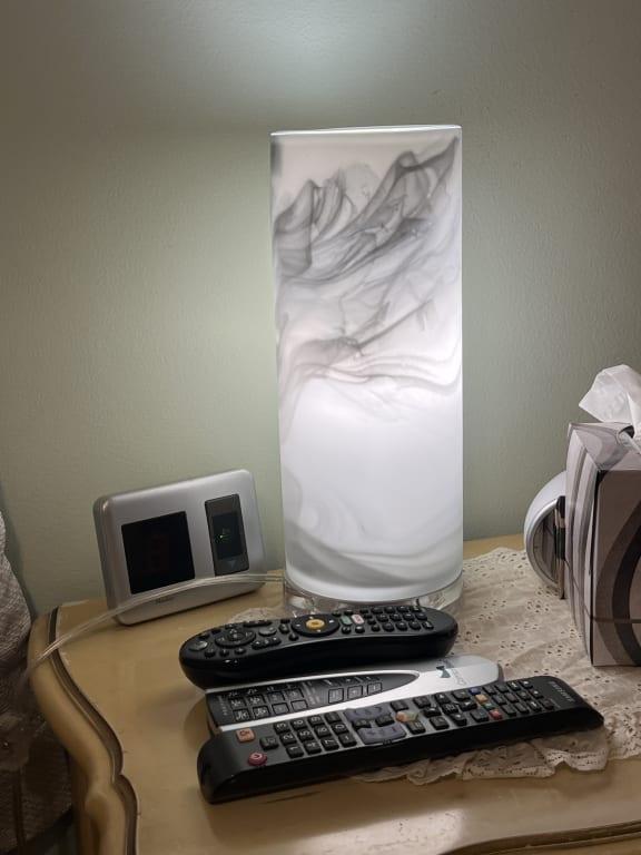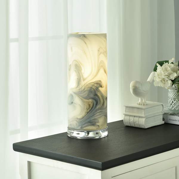 Elevate your space with the Grey & White Swirled Glass Uplight
