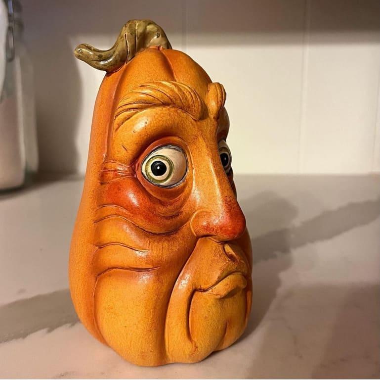 Made of resin and featuring a detailed face design, it effortlessly adds a playful touch to any space. With its vibrant orange color, this pumpkin perfectly captures the essence of the season.