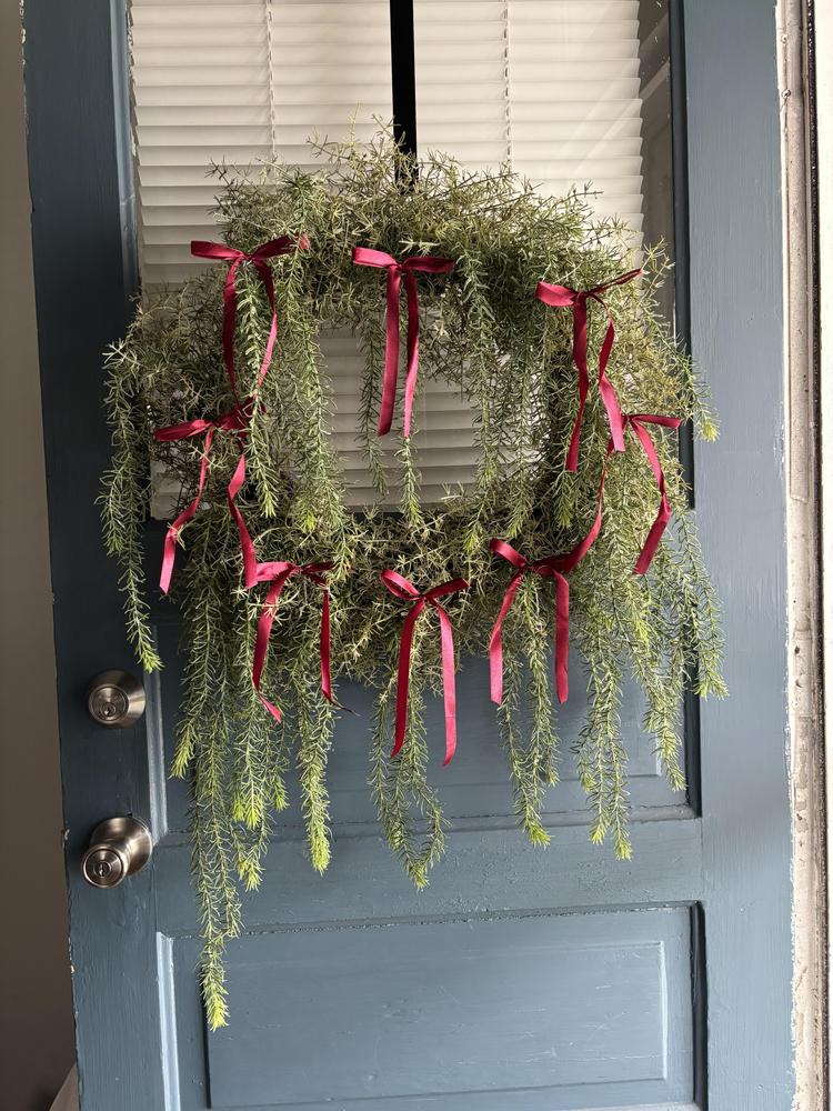 I first saw this in the Halloween decor and it is so cute as Halloween decor but can also be used as a cute different Christmas wreath. I added some red bows to it to make a Christmas wreath and I’m obsessed. I only remove one star because it’s not as lush as it looks in the photo online.