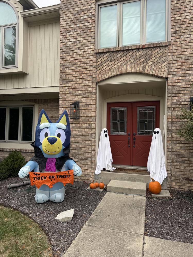 Blow up your holiday curb appeal with this life-size 6.5ft. Bluey Halloween Inflatable Decoration. This welcoming character is sure to draw attention. Whether you place this Halloween inflatable in the front yard or backyard, it serves as a bold and eye-catching seasonal centerpiece. Passers-by will be drawn to its unique and colorful presence, making your home stand out in the neighborhood during the festive season. The polyester Bluey with “Trick or Treat” sentiment sign comes with a blower to quickly inflate this amazing decoration. When the festivities are over, deflating and storing this blow up is equally simple. You can fold it up and tuck it away for continual use for years to come.