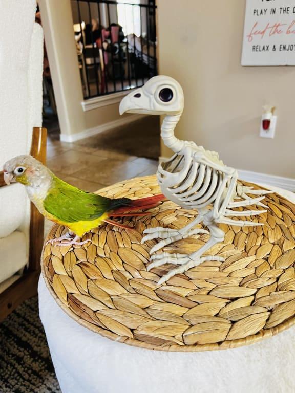 Whether it's part of a haunted house display or an accent on your festive dinner table, this crow skeleton is sure to be a conversation starter. Its detailed design and skeletal appearance make for a compelling visual that's perfect for the spookiest night of the year.