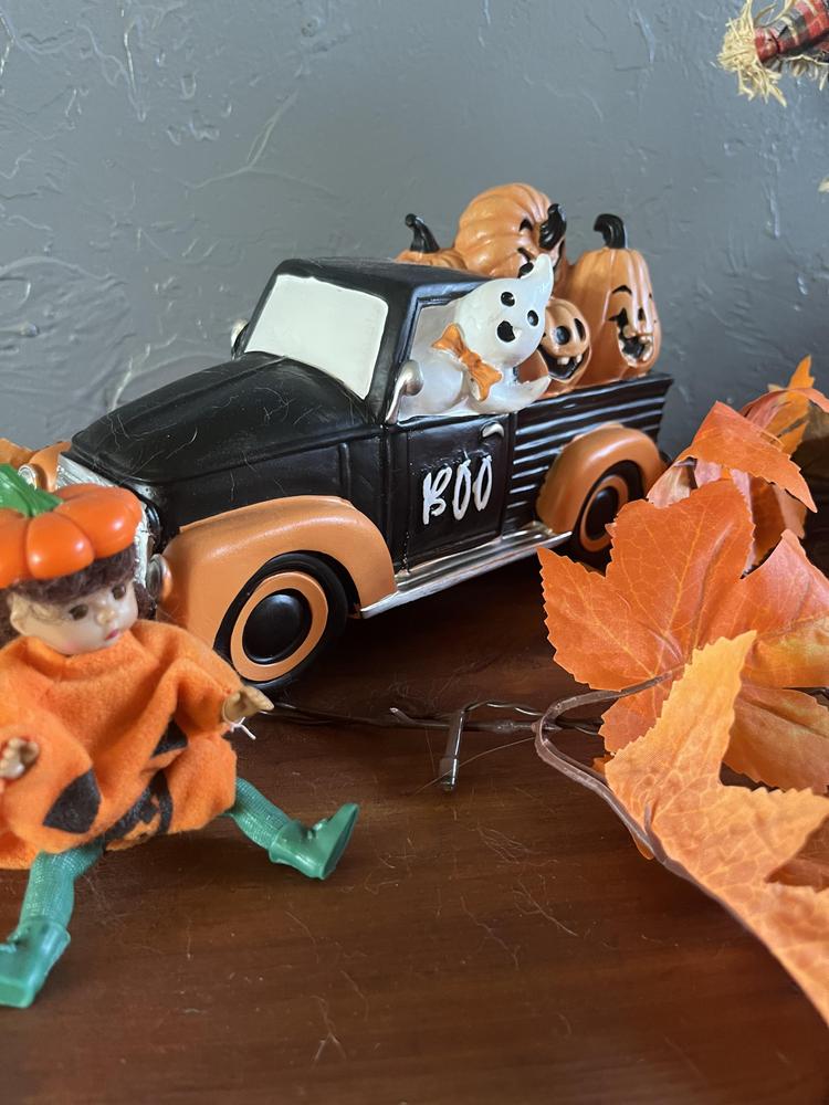 Happy Haunting Resin Truck with Pumpkins, 12"