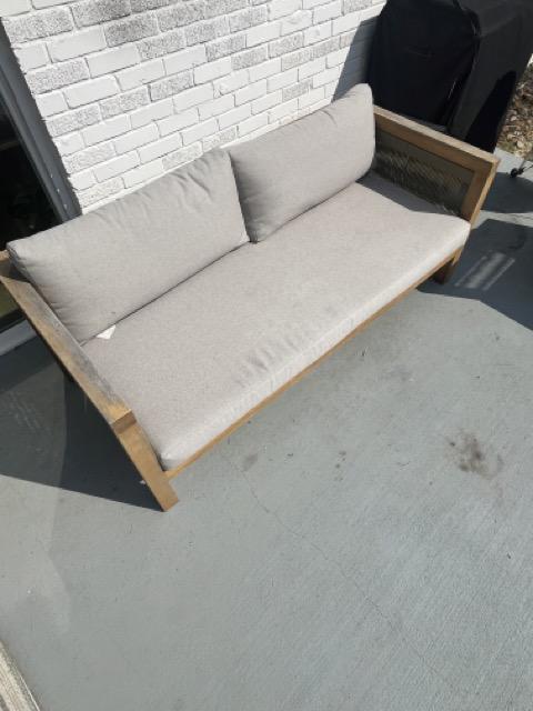 With its interesting mixed media and weather-resistant construction, this one is a must-have for any outdoor seating arrangement. A solid light natural acacia wood construction and neutral canvas fabric finish give it lakeside-inspired appeal, while a slatted design instantly elevates its style.