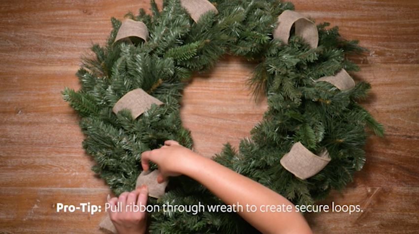 3. Pull ribbon through the back of the wreath to create extra secure loops without wire or hot glue.