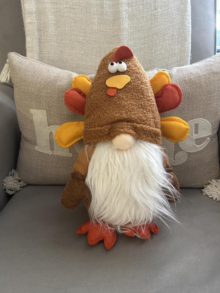 Dressed in a vibrant array of colors, this fabric turkey gnome brings a whimsical touch to your holiday season. Made from warm and cozy polyester, it's the perfect way to add some festive charm to any room.