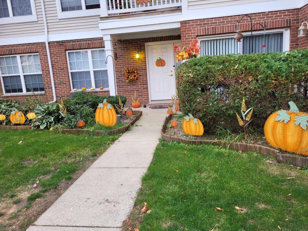 This charming 22in. metal pumpkin yard pick captures the essence of the harvest season with its warm orange color and Homespun Harvest decort theme. Its playful pumpkin design instantly brings a smile to your face, reminding you of cozy autumn days.