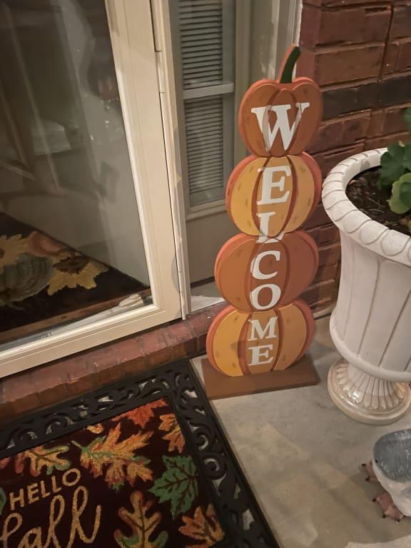 With its delightful homage to the harvest season, the stacked Pumpkin Porch "Welcome" Pumpkin Stand is the perfect accessory for creating a warm and inviting atmosphere for all during the autumn months. Crafted with a keen attention to detail, its wood construction ensures sturdiness and durability, allowing you to enjoy this lovely piece year after year.