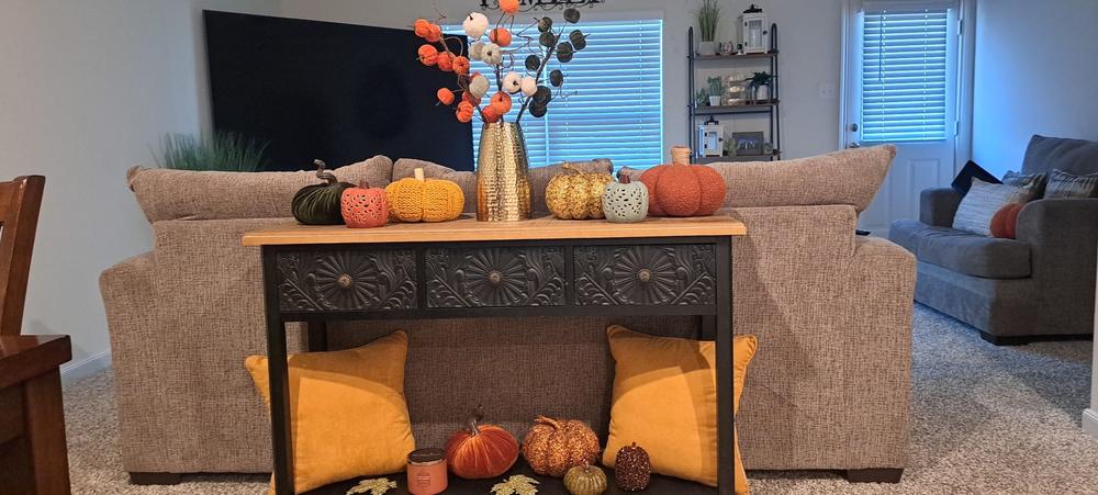 Made from soft cotton, this crochet pumpkin exudes a homespun charm that feels both nostalgic and stylish. Whether adorning your mantle, dining table, or a cozy corner, it's sure to be a delightful focal point.