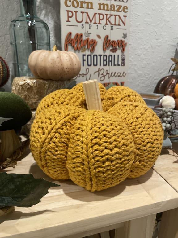 Introducing the Honeybloom Yellow Crochet Pumpkin, a delightful addition that brings a cozy, artisanal touch to any space. Its vibrant yellow hue adds warmth and cheer, perfect for autumn-inspired decorating.
