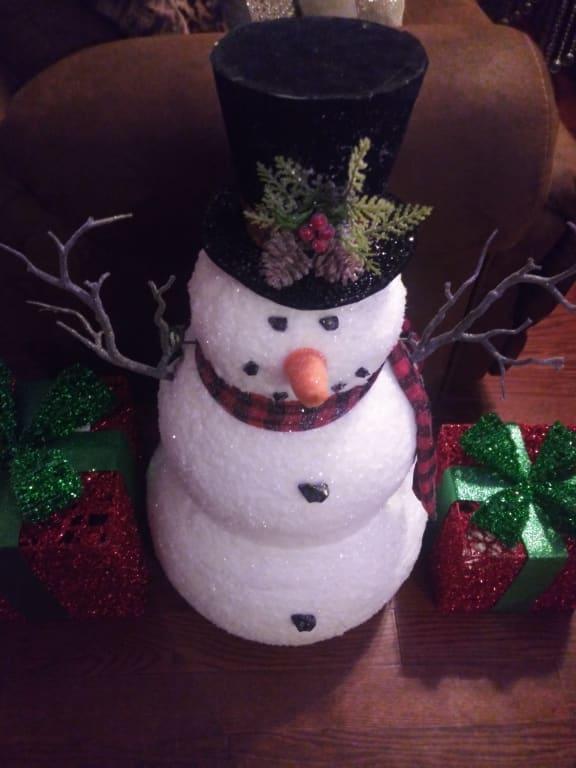 Be inspired by a Christmas in the woods, this is a cozy theme with a woodland twist, natural finishes and neutral tones with items from our Homespun Holiday Collection. Bring cheerful charm to your space with a white snowman figurine topped with a classic black top hat. Standing 29in. tall with a 15in. footprint, it makes an easy statement on a mantel, console, or entryway. Crafted from plastic, it is lightweight and simple to move wherever your holiday decorating calls. A friendly face and winter-ready details add cozy character to your Christmas indoor decor.