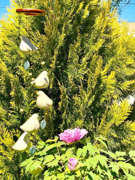 Hanging ceramic bird wind chimes