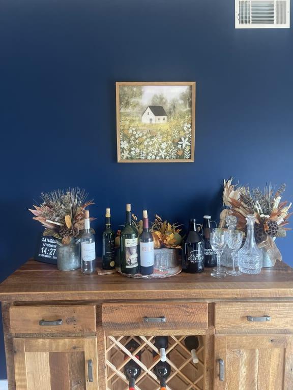 - Made of wood and glass.