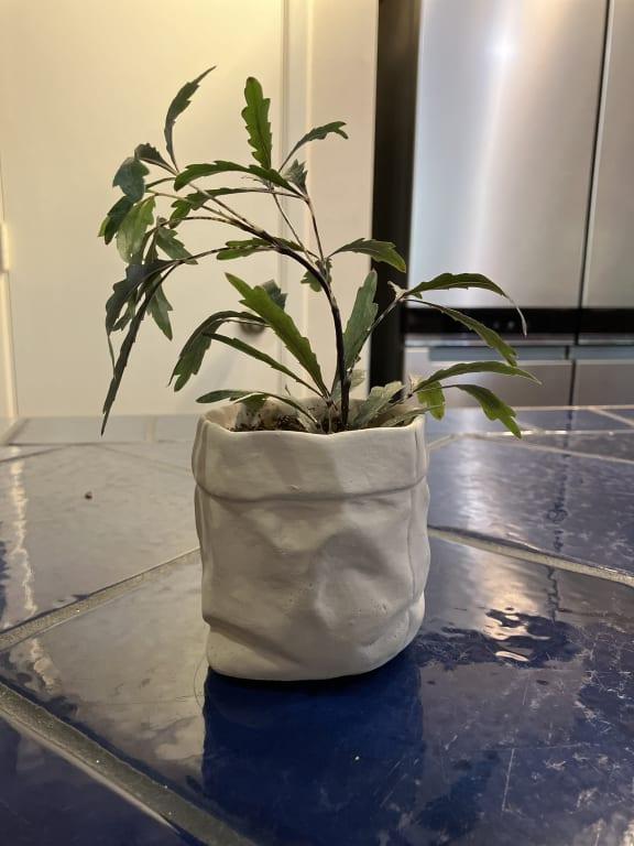 The Honeybloom Indoor Paper Bag Planter is as functional as it is fashionable. Made from concrete, this planter is durable and designed for both indoor and outdoor use. Its compact size makes it versatile, allowing you to place it on windowsills, tabletops, or shelves, effortlessly incorporating nature into any room. With its delightful design and endless planting possibilities, this planter is a great addition to any plant lover's collection.