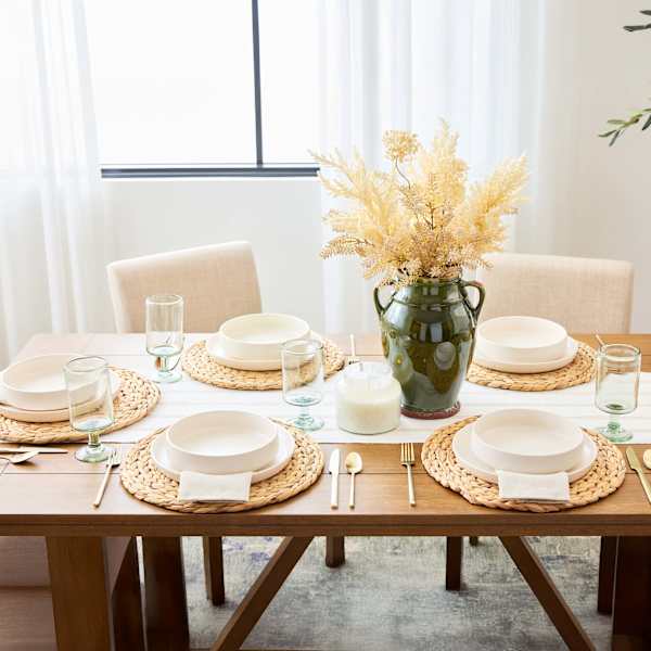 Modern farmhouse meets At Home prices in Honeybloom, our exclusive new brand that celebrates life lived together. Our natural round water hyacinth placemat is perfect to have a casual look to your table space. This circular silhouette is great to add a bit of shape to any of your dinning tables. Perfect for any everyday use.