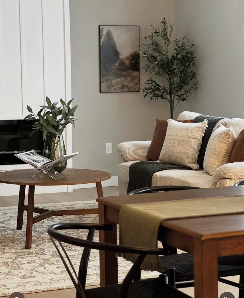 Modern farmhouse meets At Home prices in Honeybloom, our exclusive new brand that celebrates life lived together. The Sierra round coffee table introduces simple farmhouse style in any living space. Drawn from traditional styling, this table captures rustic design with plenty of practicality. Showcasing a medium natural finish, this coffee table boasts wood grain patterns that exude warmth and natural allure. Ideal for placement in front of your sofa or as an occasional table. Or stage it under a window as an accent table and top with a lamp or piece of art. Even use as a convenient plant stand.