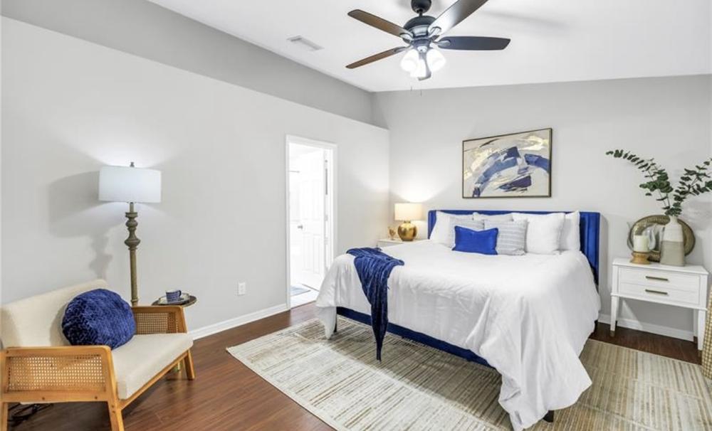 The reflective gold & various shades of blue make this the perfect piece of art to modernize a space. Great size for over a bed, light weight and easy to hang!