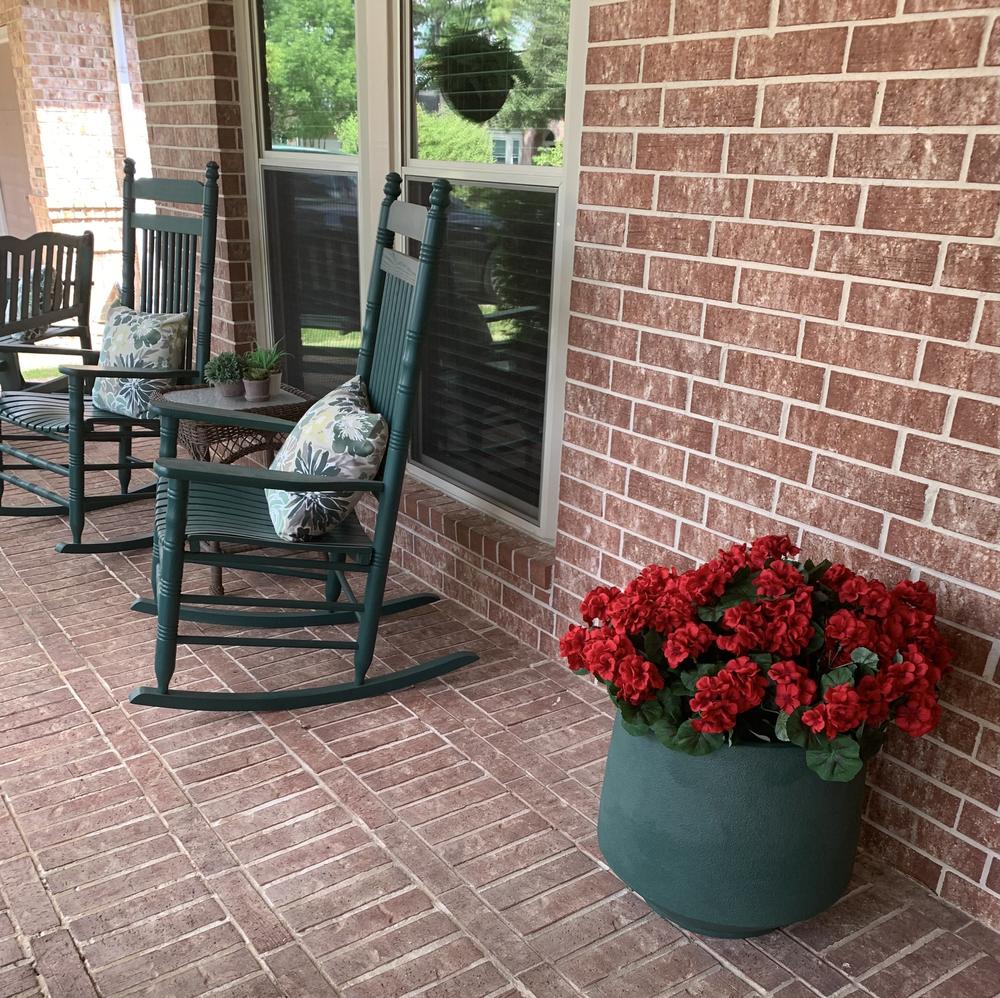 This pot was perfect for our front porch. The color matched the furniture on our porch perfectly. And we planted geraniums in it and it looks great.