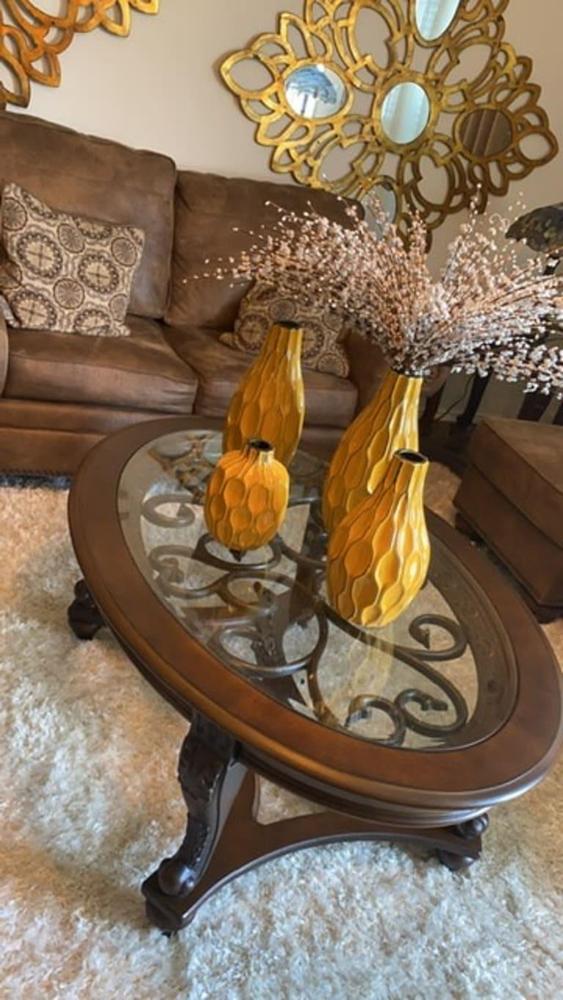 Love interesting shapes and vivid colors? This decorative mustard yellow vase makes a bold statement. Perfect as is, it will look even cooler with a mix bouquet of lilies, lavender, or other warm-colored flowers. This classy ceramic vase is the splash of color you need to brighten up the entire room!