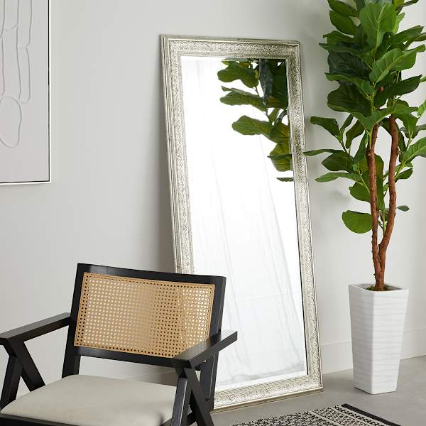 Mirrors just add a touch of glam anywhere they're placed, and our 30x65in lacy champagne leaner mirror is no exception. Whether you're looking at one last glimpse before you leave the house, or just brighten up your living spaces, adding a mirror like this one is a great option for a useful, decorative accent in your home. Reflect on this, our lacy champagne mirror is a gleaming touch for any living space. And since mirrors have the added bonus of reflecting light, this piece, wall mounted or leaning is sure to make a living room or bedroom feel even larger.