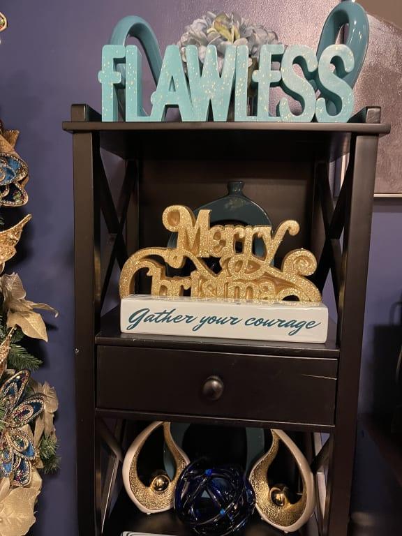 Laila Ali brings the mindset of a world-champion athlete and passion for healthy living to create a modern lifestyle collection with serious style found only At Home. Round out your table decor's visual appeal with this “Gather your courage” ceramic message block sign, showcasing a teal and blue colorway. This piece's sentiment and architectural details add a pop to your look, while the design's finish blends effortlessly into any color palette. Set this piece inside or out to enhance your space with wonderful coordinating decor.