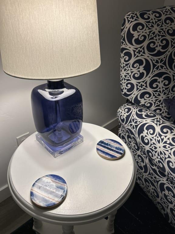 Laila Ali brings the mindset of a world-champion athlete and passion for healthy living to create a modern lifestyle collection with serious style found only At Home. Beautiful grey glass enhances this 15in. table lamp's square shape. The body has the look of a ginger jar making, this barrel style lamp a glam addition to a living room, dining room, office or bedroom.