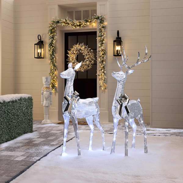 Create holiday memories for years to come with our 5ft. LED Disco Doe in your front yard this holiday season. This LED-lit festive deer has a cozy glow and displays coordinated ribbon and bow accent for loads of groovy holiday charm. This lighted deer will cause quite a stir and is a simple reminder that “you should be dancing” this holiday season.