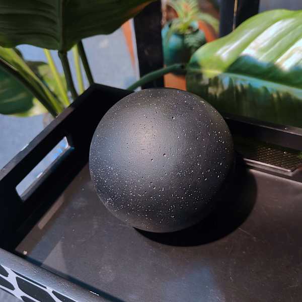Ground your modern decor with this 4in. matte black resin orb featuring a sleek cement look. The smooth matte finish and round shape add a sculptural touch to shelves, consoles, mantels, and coffee tables. This sphere is an easy layer for tabletop decor, styling trays, or stacked books. Resin gives you the cement style without the heft, so you can rearrange with ease. A clean, minimalist accent that blends with industrial, contemporary, and neutral spaces.