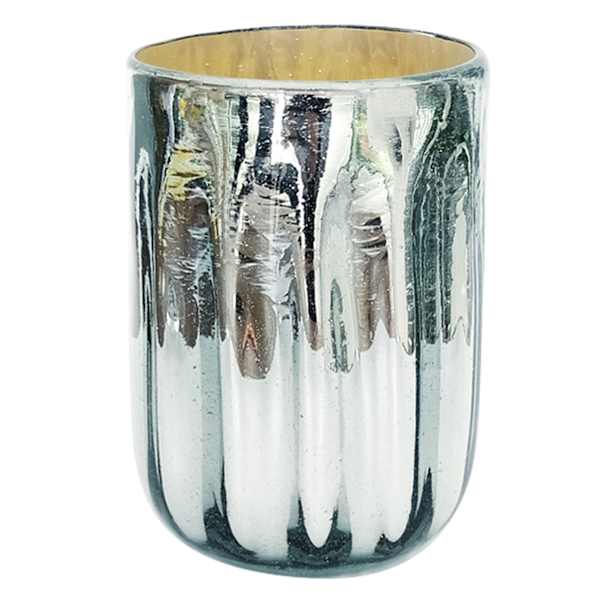 Add a pop of metallic charm to any space with this eye-catching vase. Its sleek glass construction effortlessly combines style and functionality, making it the perfect accent piece for both contemporary and traditional decors. Whether you fill it with your favorite flowers or let its mesmerizing mercury finish dazzle on its own, this vase is sure to captivate and delight.