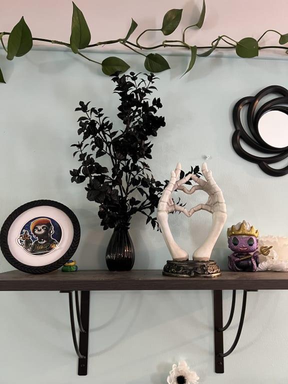 Bring out your gothic side with eerie elements like skulls, ravens and haunted houses with our Midnight Shadows Collection. With a look as unique as Halloween itself, our 25.5in. Midnight Shadows Black Boxwood Stem brings spectacular magic to favorite seasonal spots. Display as a singular artificial stem in a vase, use as filler in other seasonal arrangements or add to themed garlands. With unusual black foliage, this faux pick feels otherworldly. Place multiple stems in a decorative container to transform your home decor this holiday season. Display it in your living room, entryway or bedroom to lend your space a special Halloween decor vibe.