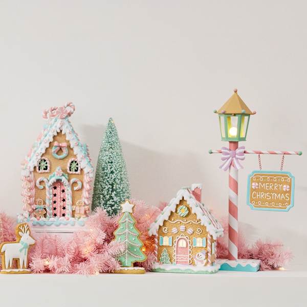 Our Christmas gingerbread house adds a sweet staple of the Christmas season to your holiday home. This adorable house is beautifully embellished with colorful candy accents and a sparkly roof for added cheer. Our 14.5 in. Mrs. Claus' Bakery LED gingerbread house is the perfect piece to add a bit of sweetness to your home. Place this gingerbread anywhere in your place and enjoy the sweetness that this Christmas will bring.