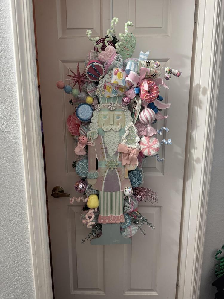 Mrs. Claus' Bakery is a whimsical, candy-colored collection that takes you inside the kitchen with Mrs. Claus, sprinkled with pastel hues and sweet accents. Add a pinch of fun to your porch, patio or garden with our 32in. Pink Nutcracker Porch Leaner from our Mrs. Claus' Bakery Collection. Created with love, this wonderful piece features a pastel nutcracker motif. Everyone will enjoy the nice welcome. Made of painted faux wood, this wall decor/ porch leaner is designed to greet guests all season long.