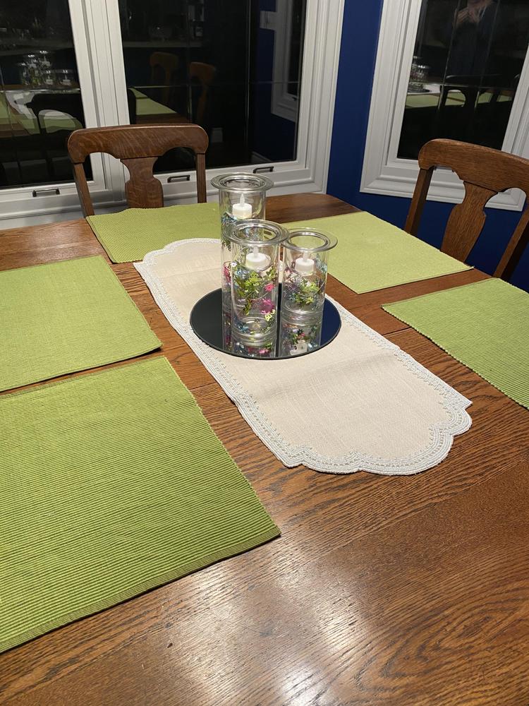 Lovely 36” Table Runner with White Beaded Edging