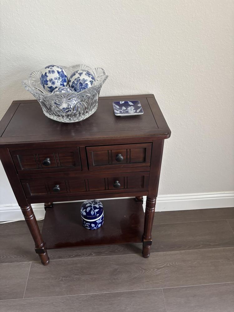 Navy Blue Floral Chinoiserie Trinket Tray, 4x4