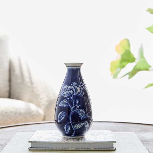 Bring classic chinoiserie charm to your space with this navy blue porcelain vase. A glossy finish and crisp white floral artwork create a timeless look that complements both modern and traditional decor. The slim profile and narrow neck are ideal for a single stem on a nightstand, mantel, or bookshelf. At 3x6in., it slips into small spaces while still making a stylish statement. Display it solo or pair it with other blue and white decor for an effortless vignette.