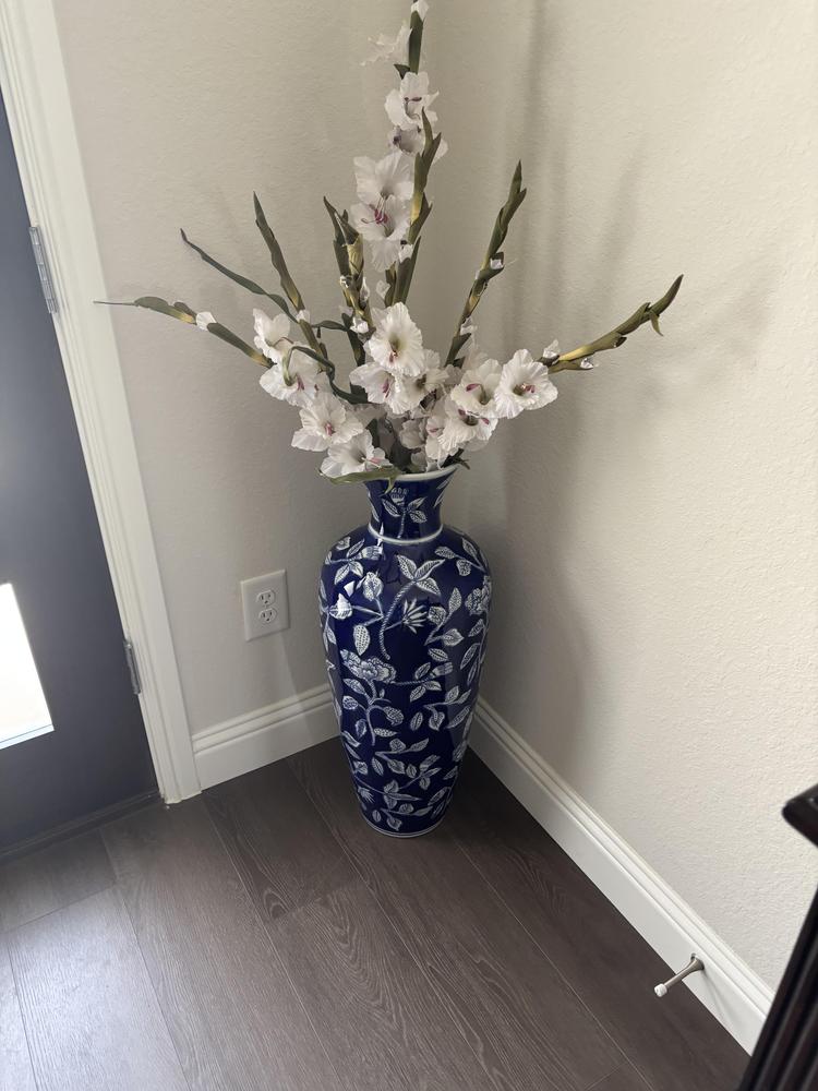 Navy Blue Floral Chinosiere Porcelain Vase, 28"