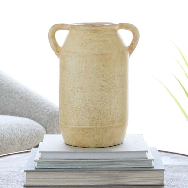 The Neutral Bender Terracotta Vase brings sculptural shape and a warm matte finish to your space. Its softly double handled silhouette adds modern organic style to shelves, mantels, and side tables. The neutral clay tone blends with boho, minimalist, and earthy decor. Display it solo as an artful accent or pair with dried stems for a subtle statement. Measures 7x12in., a versatile size for bookcases or entry consoles. A simple update that elevates everyday home decor.