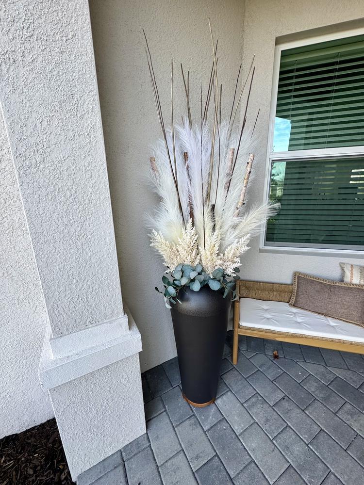Whether standing alone or filled with your favorite dried flower arrangement, this vase effortlessly elevates your interior. With its versatile design, it can magically transform even the simplest room into an elegant yet cozy ambiance. The ceramic material ensures that it stands as a statement piece for many years to come.