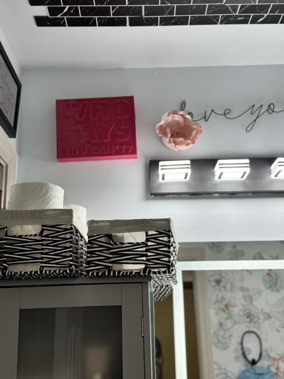 CheckoutBring an uplifting charm to your desk, shelf, or nightstand with the Oh Joy! "Who Says You Can't" Pink Typography Tabletop Sign. Dressed in a delightful pink canvas, this sign injects a playful spirit into any room. Its vibrant typography encourages you to dream big and embrace possibilities.