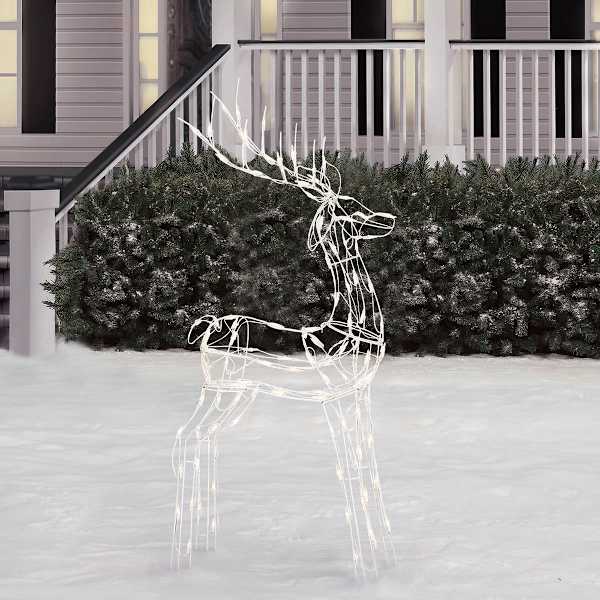 This 48in. Outdoor Pre-Lit White Wire Buck adds a touch of whimsy and charm to your holiday decorations. With its festive incandescent lighting and sparkling white finish, this buck is a delightful addition to any yard or garden.