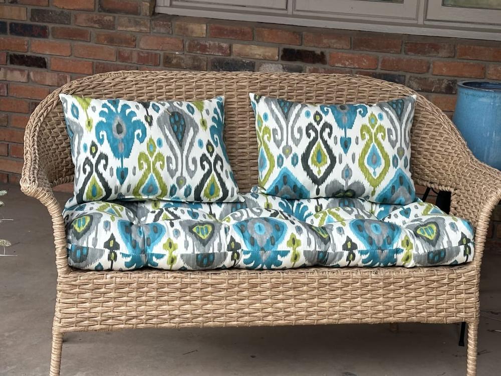 Make moments enjoying the great outdoors even more pleasing with our Paso Turquoise Outdoor Wicker Settee Cushion, perfect for boosting the comfort and style of your favorite outdoor spaces. Create a stunning patio, porch or deck that will be the talk of the neighborhood. Check our overall selection for a variety of shapes, sizes, patterns and colors to fit the personality of your patio.