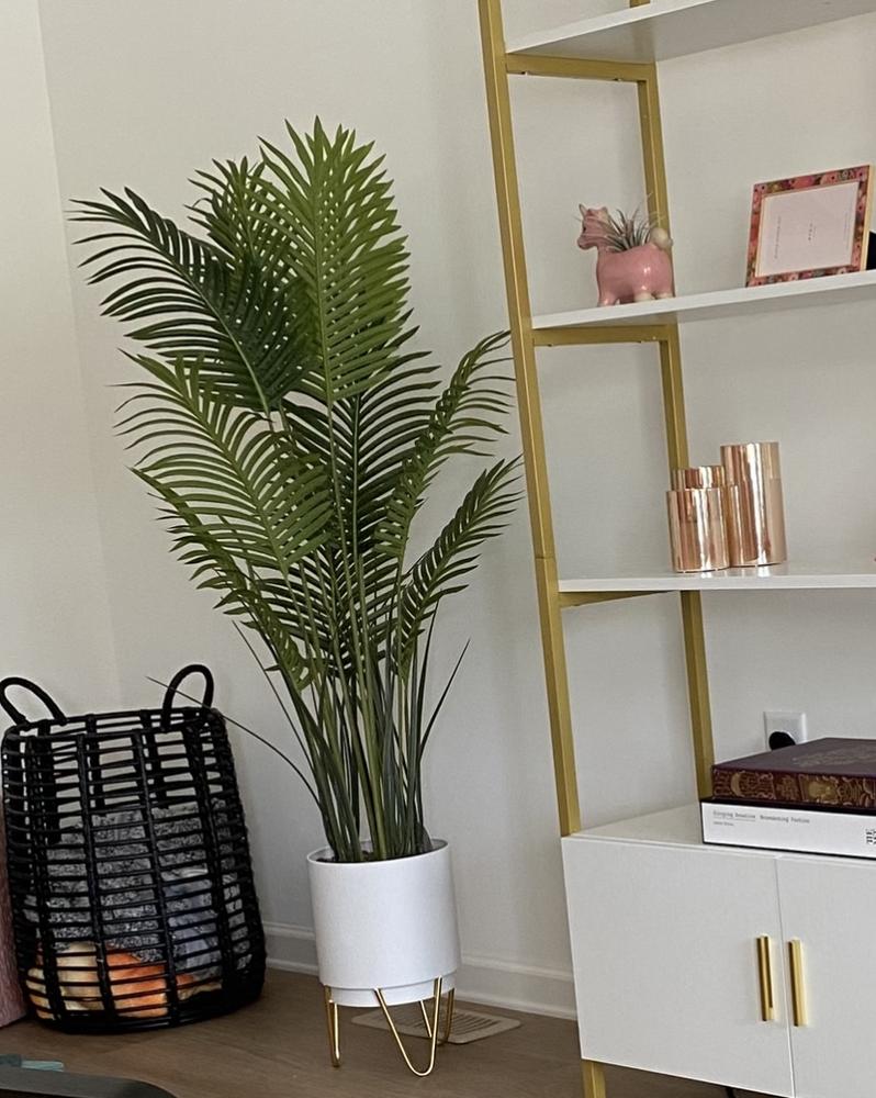 Add a dash of nature's charm to your home or office with the 55IN Palm In Metal Stand Pot WHITE. Its clean lines and minimalist design complement any decor style, making it a versatile addition to your space. Whether you place it in the corner of your living room or use it to liven up your workspace, this palm pot adds a touch of tranquility and sophistication wherever it goes.