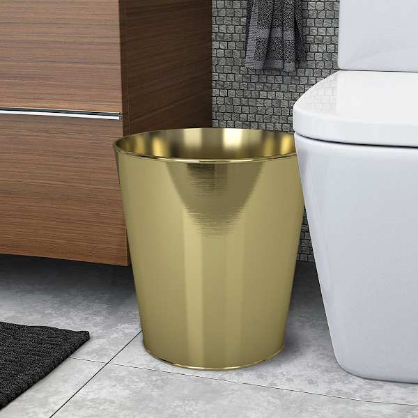 Elevate your decor with the Gold Metal Waste Basket by Providence. Its timeless design and metallic color add a touch of elegance to any room, making it the perfect addition to your home or office.