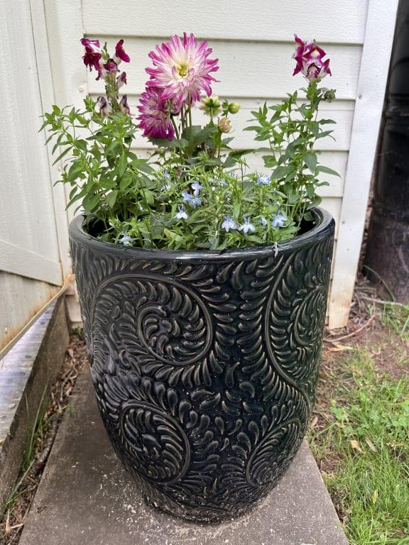 With its 16in. height and green color, this planter effortlessly blends in with the surrounding environment, creating a seamless and harmonious connection between your outdoor living space and the natural world. The ceramic construction ensures durability, allowing you to enjoy its beauty season after season.