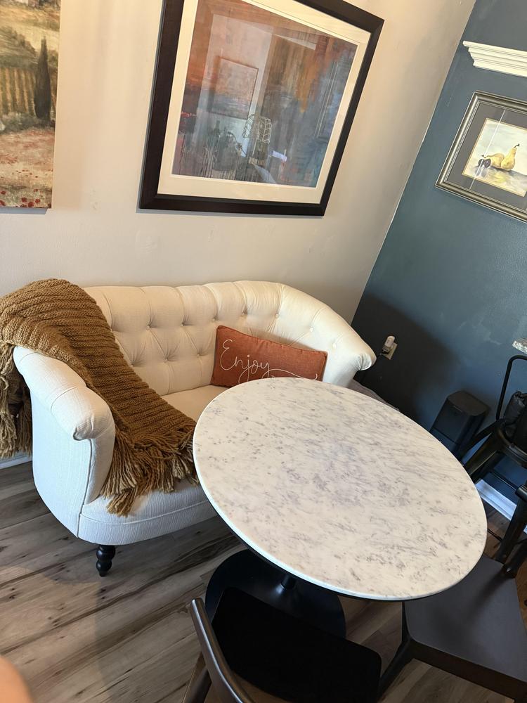 Great settee for a good price. Perfect for my reading room. Definitely a delicate piece and could use an extra middle back leg for added support but for what I needed, it's perfect.