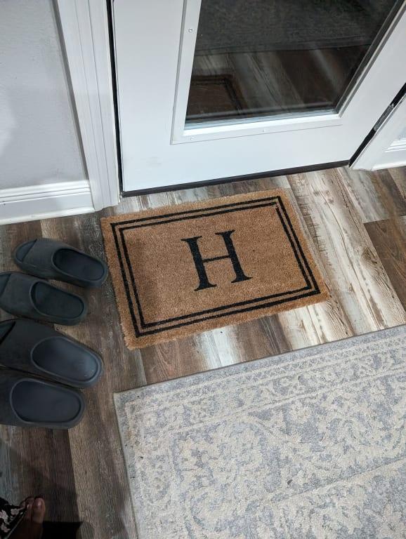 A collection that lets everyone relax in style. Polished finishes and classic hues pair with fun finds. Providence is where elegant settings still feel comfortable and warm-exclusively At Home. Our monogram “D” coir doormat lets you express your style as you welcome friends and family into your home all year long. With a wonderful black and natural border motif, this 18x27in. doormat coordinates with all your seasonal decor.