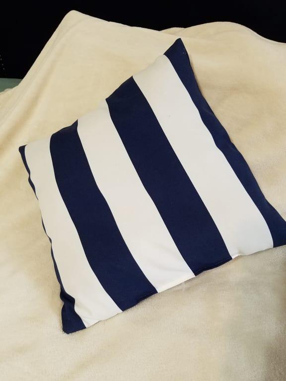A collection that lets everyone relax in style. Polished finishes and classic hues pair with fun finds. Providence is where elegant settings still feel comfortable and warm-exclusively At Home. Our outdoor cushions are durable and ready to stand up to the elements. Polyester construction and all-weather capability make this navy blue awning stripe 16in. square throw pillow is a must-have for outdoor entertaining. With the fashion-forward navy blue and white design, you can create a stunning patio, porch or deck that will be the talk of the neighborhood. Check our overall selection for a variety of shapes, sizes, patterns and colors to fit the personality of your patio.