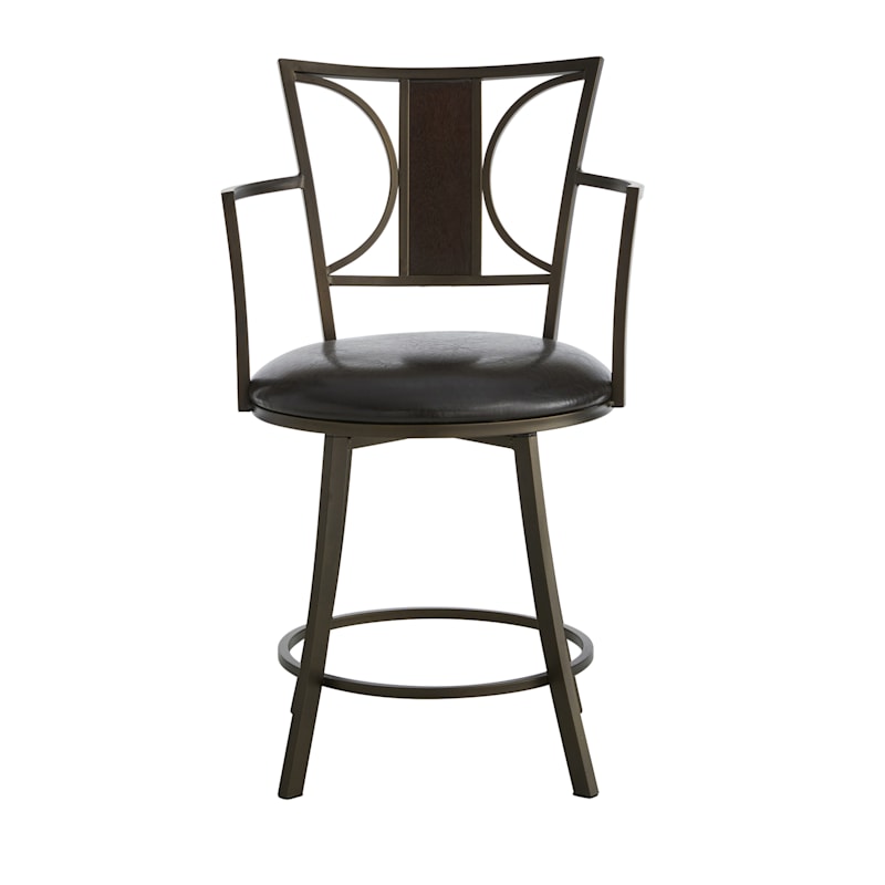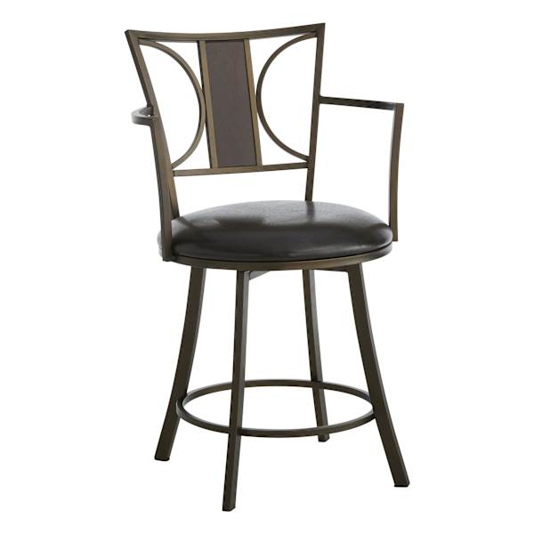 You can't go wrong with a stylish barstool in the kitchen, it seems to be the spot where everyone congregates. Offer a touch of sturdy, classic style to your dining area with our Renata oversized faux leather barstool featuring four slightly curved legs, a round seat, and a wood and half sphere back. Crafted of wood, metal and faux leather upholstery in a rich, dark finish that will work well in most home decor.