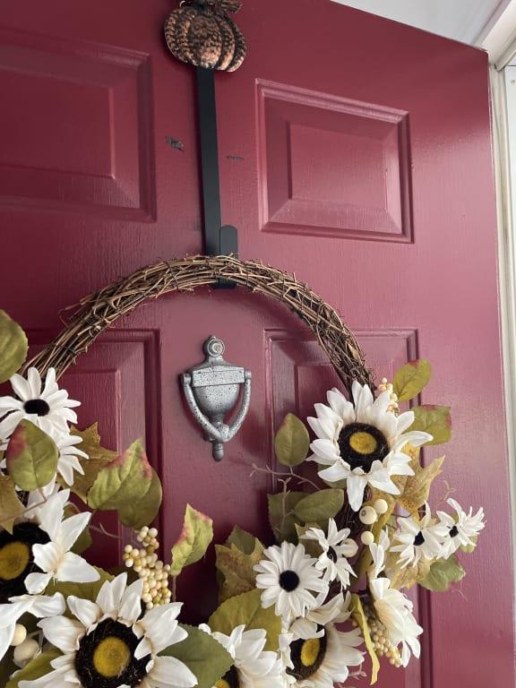 I always have something hanging on my front door and this hanger is beautiful and sturdy enough to hang my friendly ghost for Halloween and my Fall wreath. Dual purpose!