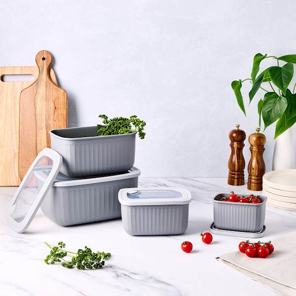 8-Piece Grey Rect Plastic Ribbed Mixing Bowl Set